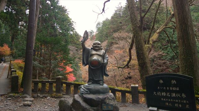 随神門の横には福をもたらすとして信仰されている七福神の一つ目の毘沙門天の像があり立派で精巧に造られている。榛名神社の参道の途中にある七福神の像を探す七福神巡りをすると幸福になるといわれる。前回制覇したので今回はスルーした。だいぶ散っていたが紅葉も美しい。